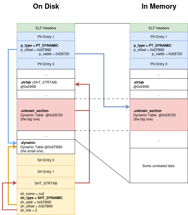 TheSHT_STRTABis found viadynamic_shdr->sh_linkwhich is the index of theSHT_STRTABentry in theSHT.- Maps the segments into memory.