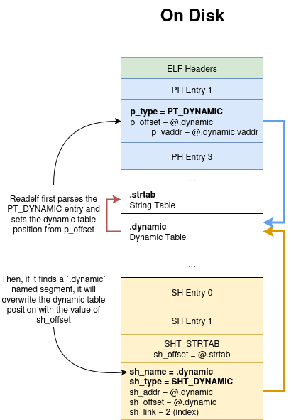 SHT_DYNAMICvalue, which must be equal to the p_offset and have the same size as in the program header.